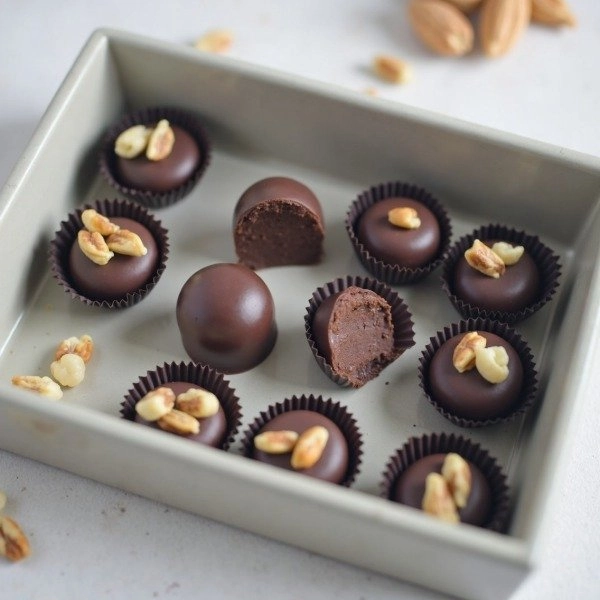 Nuestros Bomboncitos KETO son pequeñas joyas de chocolate pensadas para un placer saludable y sofisticado. Elaborados con chocolate 80% cacao, cada uno está relleno con un ganache cremoso de chocolate y frutos secos tostados que aportan textura y un sabor irresistible. Presentados en una caja de 6 unidades, representan la combinación perfecta entre lo intenso del cacao y lo crocante de los frutos secos, en un formato elegante y artesanal.