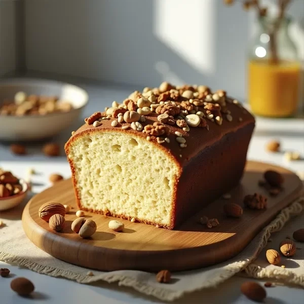 Budín keto de vainilla y frutos secos, elaborado con harina de almendras premium y endulzado con eritritol sabor vainilla. De miga húmeda y suave, tiene un delicado sabor a vainilla. La superficie está cubierta con una mezcla crocante de nueces.