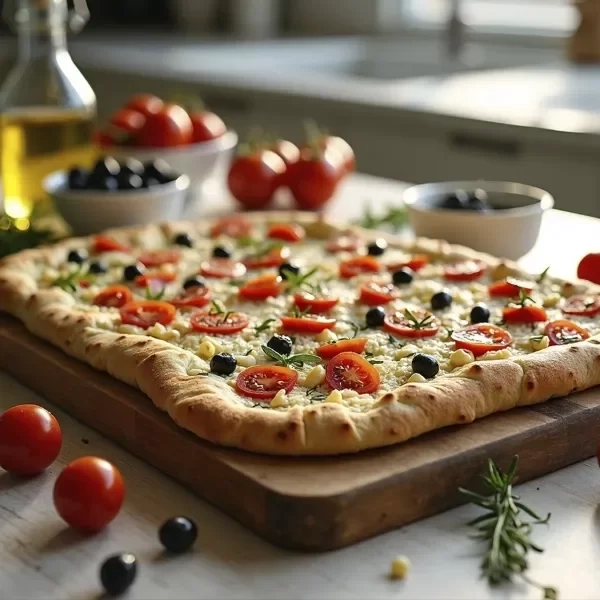 Una opción sabrosa, liviana y perfecta para cualquier momento del día. Nuestra focaccia keto está elaborada artesanalmente con harina de almendras premium, logrando una textura esponjosa y suave, sin harinas refinadas. Está coronada con jugosos tomates cherry y aceitunas, que le aportan un equilibrio ideal entre frescura y sabor mediterráneo.