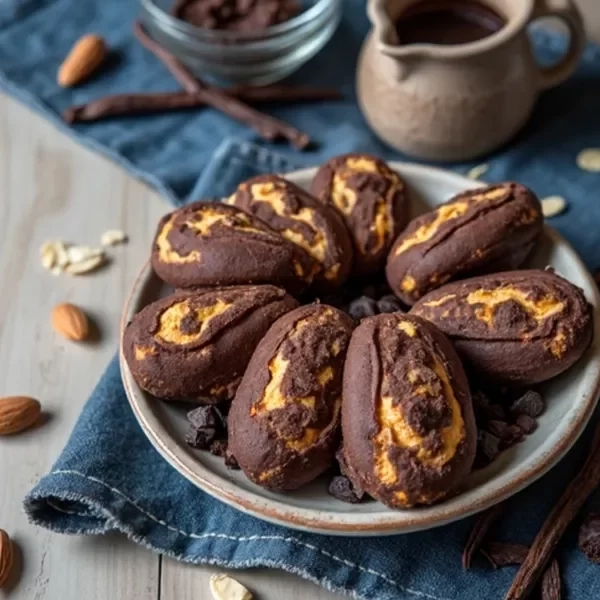 Madeleines marmoladas, con masa veteada de vainilla y chocolate 80% cacao. De miga esponjosa y presentación visual atractiva, combinan lo mejor de ambos sabores con una textura envolvente.