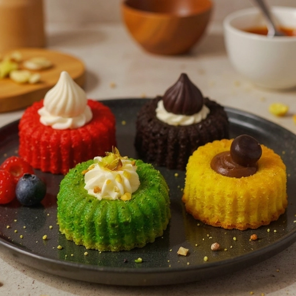 Mini cakes artesanales elaboradas con harina de almendras premium, endulzadas naturalmente y combinadas con huevos frescos, manteca y crema de leche para lograr una textura suave y húmeda.